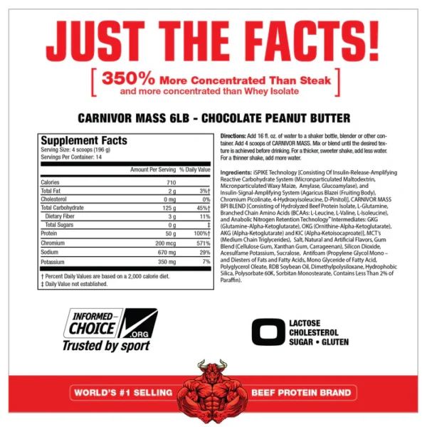 | Carnivor Mass | گینر با ترکیبی از پروتئین گوشت گاو و کربوهیدرات زیاد | برای افزایش حجم عضلانی، همراه با ادعا به سرعت جذب بالا و فناوری مخصوص iSpike |