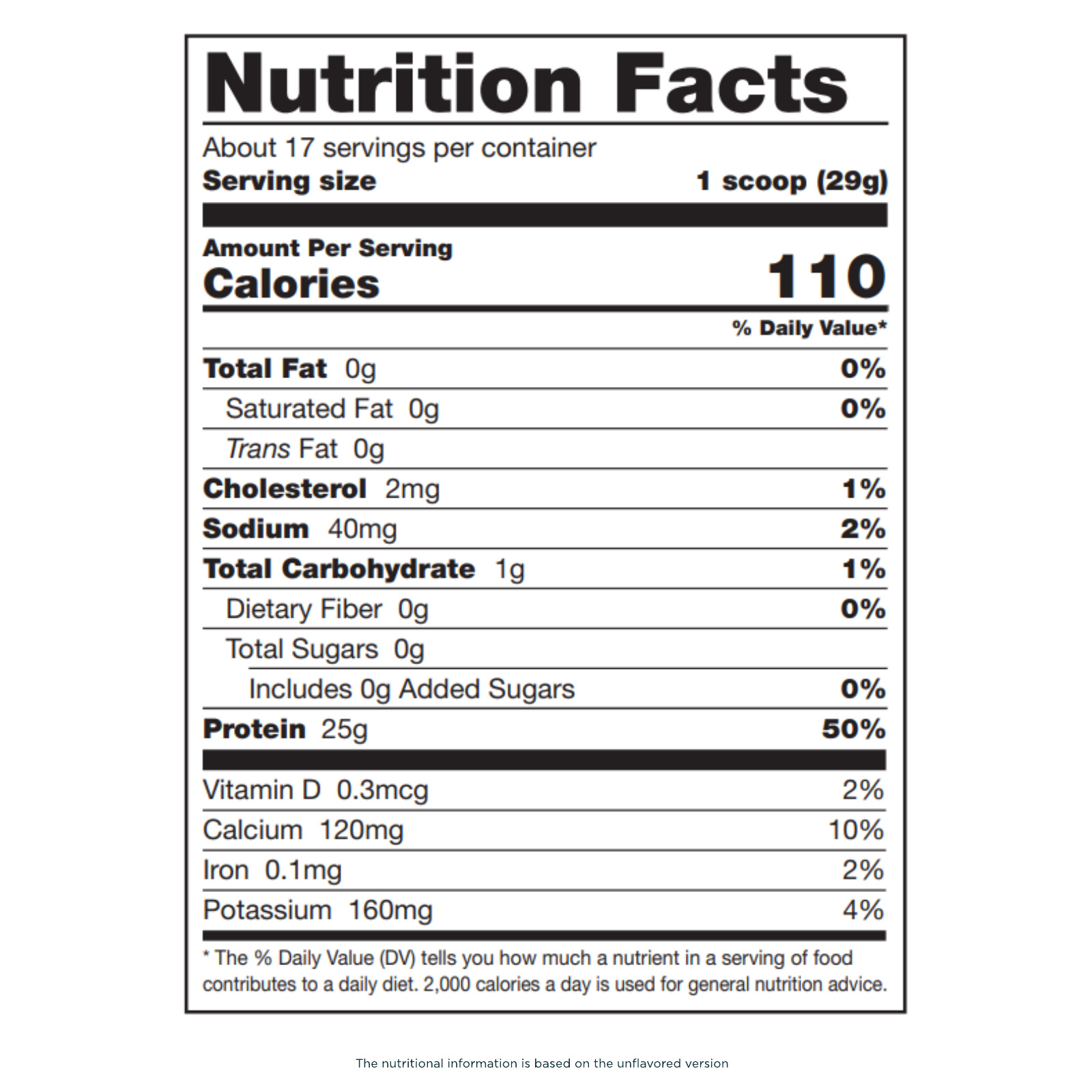 با دارا بودن بیش از ۹۰٪ پروتئین خالص در هر وعده، عملاً فاقد چربی و لاکتوز بوده و انتخابی ایدهآل برای